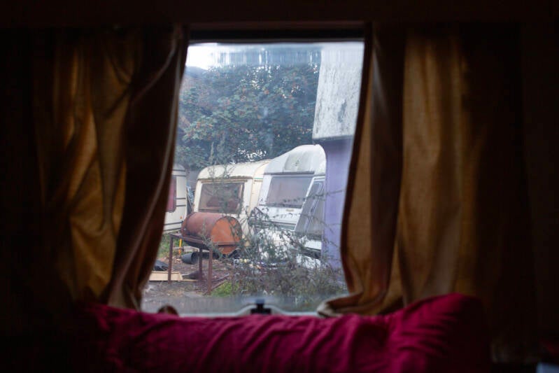 In Site reveals a community who lived on the fringes of society. Set in a zeitgeist of apocalyptic domesticity that existed in East London over two decades, a social-cultural anthropology is disclosed; juxtaposed with the mainstream society it was adjacent to. The images provide a glimpse of an underground lifestyle, with roots in New Travellers communities. Respect, freedom, truth, and beauty are conveyed, with an unpretentious perception of the experience and expression of an urban sub-culture. Embedded are elements of citizenship, domesticity, and sustainability as a strong societal message, in contrast to industrialisation and capitalism.